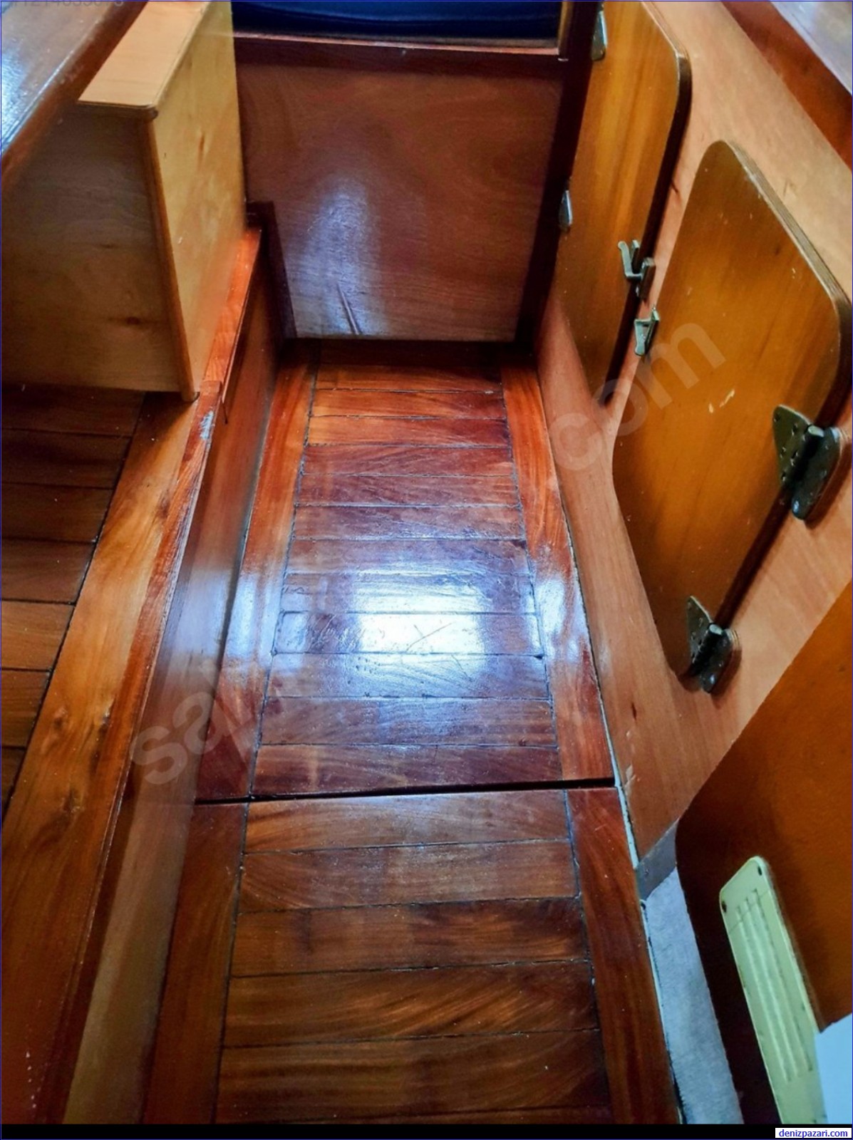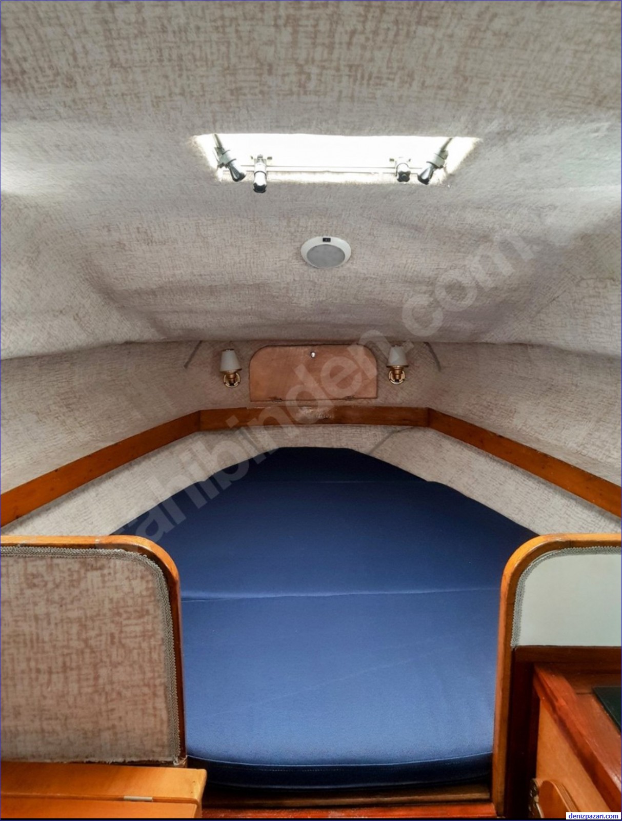 Bir kamarası var, geniş yataklı. Yatak altları dolaplı. Masası ayarlanabilir, ister masa ister yatak olarak kullanılabiliyor. Alt bölümleri erzak deposu olarak düzenlendi. Tuvaleti mobil kasetli.